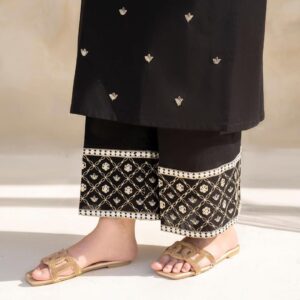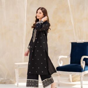 Turn heads this season with BLACK GULAB, a statement 2PC stitched suit made from premium cotton fabric, perfect for summer comfort and effortless style. Featuring a fully embroidered shirt and matching embroidered trouser, this outfit blends tradition with modern flair — ideal for both festive looks and everyday glam.