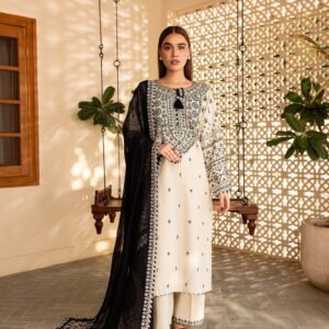 Step into refined sophistication with WHITELIME, a premium 3-piece embroidered set crafted from luxurious Stone Lilen. With rich embroidery across the shirt, trouser, and dupatta, this ensemble is perfect for festive gatherings, family events, or any moment you want to make unforgettable.